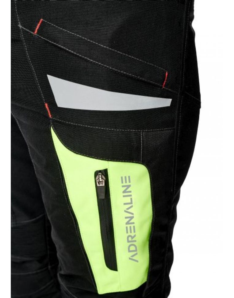 Το υφασμάτινο παντελόνι Adrenaline Cameleon, όπως και το σακάκι, είναι εργοστασιακά εξοπλισμένο με δύο σετ χρωματιστές τσέπες που ανοίγουν για να αποκαλύπτουν μια μεγάλη περιοχή αερισμού. Το σετ περιλαμβάνει τσέπες σε μαύρο και κίτρινο φωσφορίζον χρώμα. Αυτό το μοντέλο έχει αναπτυχθεί σε τεχνολογία τριών στρωμάτων με αφαιρούμενη θερμική επένδυση και επίσης αφαιρούμενη, αναπνεύσιμη και αδιάβροχη μεμβράνη Reiss, που τα καθιστά κατάλληλα για όλες τις καιρικές συνθήκες. Υπάρχουν ελαστικές ζώνες πάνω από τα γόνατα και τη μέση για άνεση. Η τοποθέτηση των παπουτσιών διευκολύνεται από μακριά φερμουάρ στο κάτω μέρος των ποδιών.