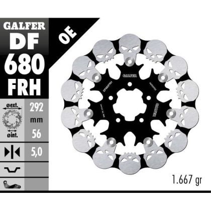 Floating Front Brake Disc Galfer WAVE SKULL DESIGN FLOATING (C. STEEL) 292x5mm DF680FRH