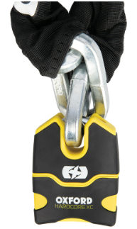 - Η κλειδαριά αλυσίδας Oxford Hardcore είναι εξοπλισμένη με τετράγωνη αλυσίδα 13 mm με προστατευτικό μανίκι που προστατεύει το χρώμα της μοτοσικλέτας.