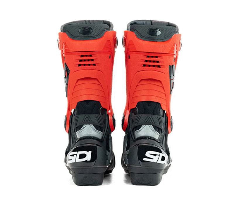 - Асиметричната и оформена пета е оборудвана с мека фиксирана вложка от вътрешната страна на глезена за по-добро прилепване и контакт с мотоциклета.