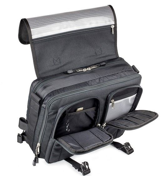 - Големият джоб с цип от мрежа от долната страна на капака е идеален за съхранение на документи.