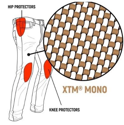 - Pioneer Monolayer е с класическа кройка с пет джоба и автентичен деним. Дизайнът е базиран на специален процес на преплитане, който съчетава деним тъкан с XTM-Fiber®. В комбинация с протекторите на коленете и бедрата, отворите за закачане на ръкавици или торбичка за дребни пари или ключове, както и еластичната материя ви осигуряват изключително комфортно носене, без да се прави компромис с нивата на защита.