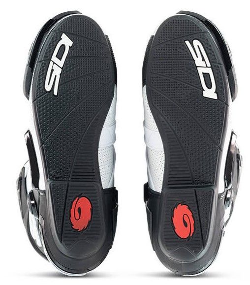 - Асиметричната и оформена пета е оборудвана с мека фиксирана вложка от вътрешната страна на глезена за по-добро прилепване и контакт с мотоциклета.