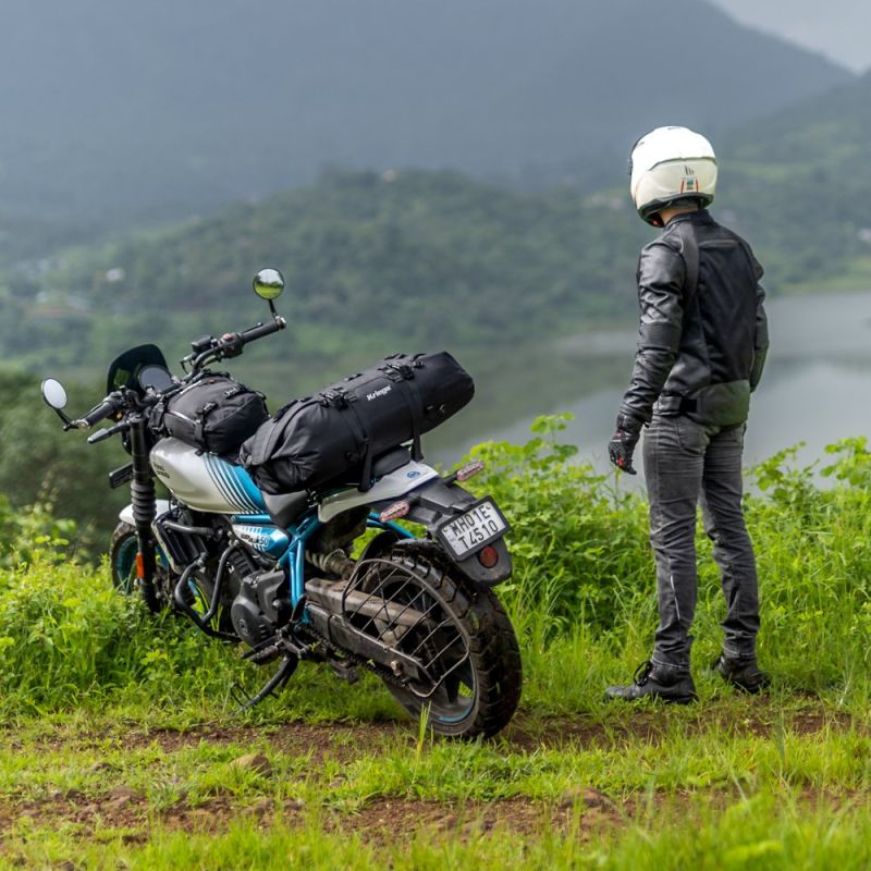 - Носете я на мотоциклета или извън него като чанта през рамо с включените подвижни ремъци за рамо и талия.