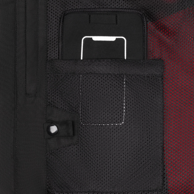 - Отвътре: 4 джоба, включително 2 с велкро, 1 вентилиран с цип, 1 специален джоб за телефон