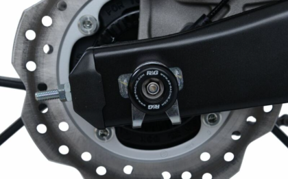 Краш тапите за ост на R&G Racing спомагат за предотвратяване на повреди в задната долна част на мотоциклета при сблъсък.