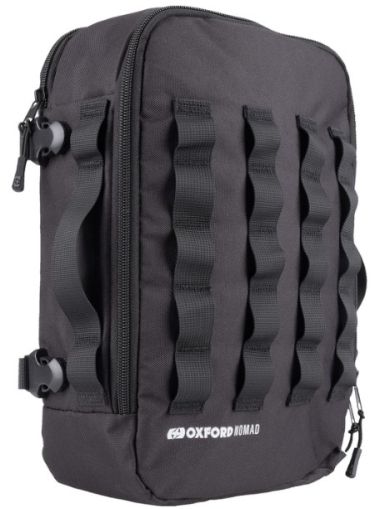 - Oxford NOMAD 4l Utility Pouch е многофункционална чанта, предназначена за по-големи предмети. С преден панел от ремъци, тя служи и като вторична точка за закрепване на други аксесоари от серията Oxford NOMAD.